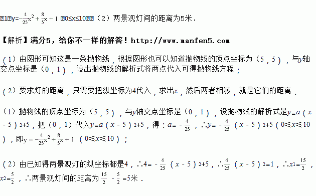 (2)求两盏景观灯之间的水平距离。