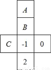 查看答案如图,是一个正方形盒子的展开图,若要在展开后的其中的三个正方形A、B、C内分别填入适当的数,使得展开图折成正方体后相对的面上的两个数互为相反数,则填入正方形A、B、C内的三个数依次为( )