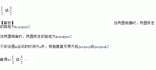 如图所示,⊙A,⊙B的圆心A,B在直线l上,两圆的半径都为1 cm,开始时圆心距AB=4 cm.现⊙A,⊙B同时沿直线l以每秒2 cm的速度相向移动,则当两圆相切时,⊙A运动的时间为__________秒.