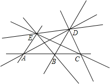 解:如图所示:有三点A、B、C在某一条已知直线上.过每两点作一条直线,则最多还能作出:直线ED,AE,DC,EB,EC,DA,DB共7条直线.
