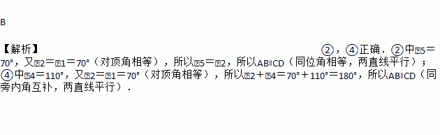 如图所示,∠1=70°,有下列结论:①若∠2=70°,则AB∥CD;②若∠5=70°,则AB∥CD;③若∠3=110°,则AB∥CD;④若∠4=110°,则AB∥CD.其中正确的有( )