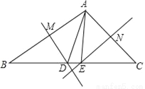 如图,在△ABC中,BC=8,AB的中垂线交BC于D,AC的中垂线交BC于E,求△ADE的周长.