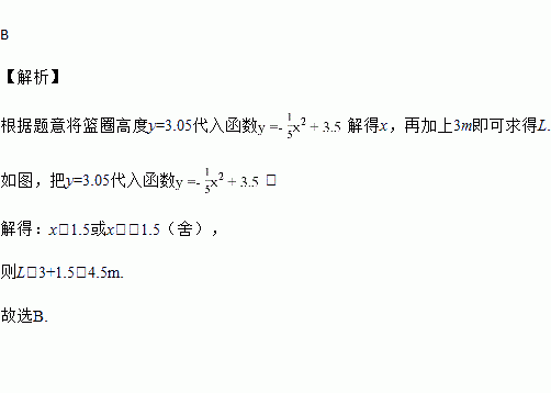 小明在某次投篮中,球的运动路线是抛物线的一部分,如图所示,若命中篮圈中心,则他与篮底的距离L是( )
