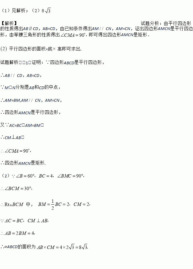 如图,在?ABCD中,AC=BC,M、N分别是AB和CD的中点.