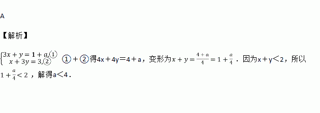 若关于x、y的二元一次方程组的解满足x+y<2,则a的取值范围是( )