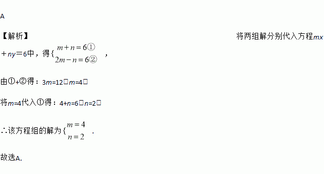 若方程mx+ny=6的两个解是,则m,n的值为( )