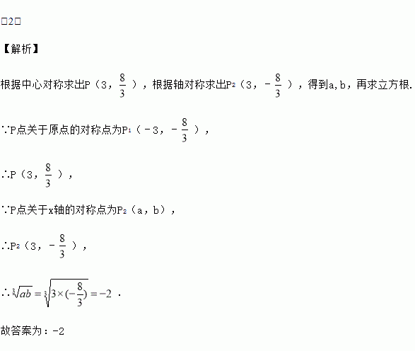 在平面直角坐标系中,P点关于原点的对称点为P1(﹣3,﹣),P点关于x轴的对称点为P2(a,b),则=_____