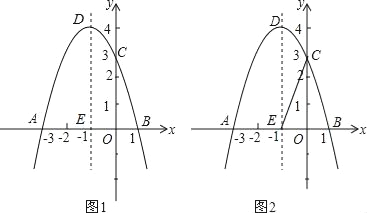 如图1,关于x的二次函数y=﹣x2+bx+c经过点A(﹣3,0),点C(0,3),点D为二次函数的顶点,DE为二次函数的对称轴,E在x轴上.