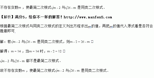 是否存在实数,使最简二次根式与是同类二次根式?若存在,求出的值;若不存在,请说明理由.