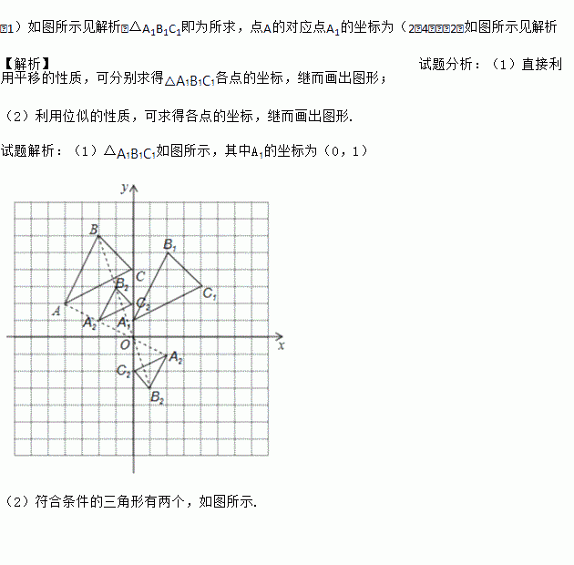 (2)以原点O为位似中心,将△ABC缩小为原来的一半,请在所给的坐标系中作出所有满足条件的图形.