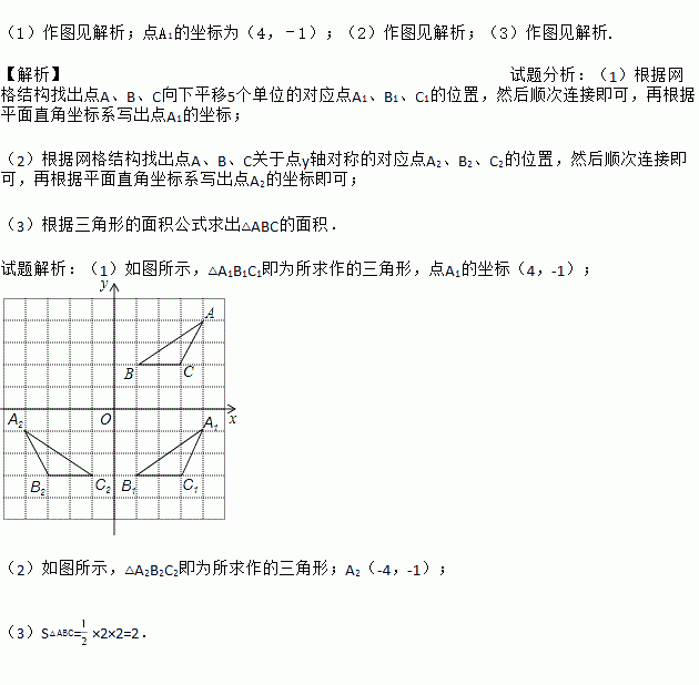(1)将△ABC向下平移5个单位长度,画出平移后的A1B1C1,并写出点A的对应点A1的坐标;
