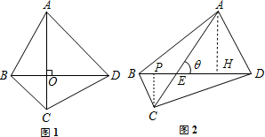(2)作AH⊥BD于H点,CP⊥BD于P点,AC与BD交于E点,根据正弦的定义得到AH=AE•sinθ,PC=CE•sin∠PEC=CE•sinθ,然后再根据三角形面积公式得到S△ABD=