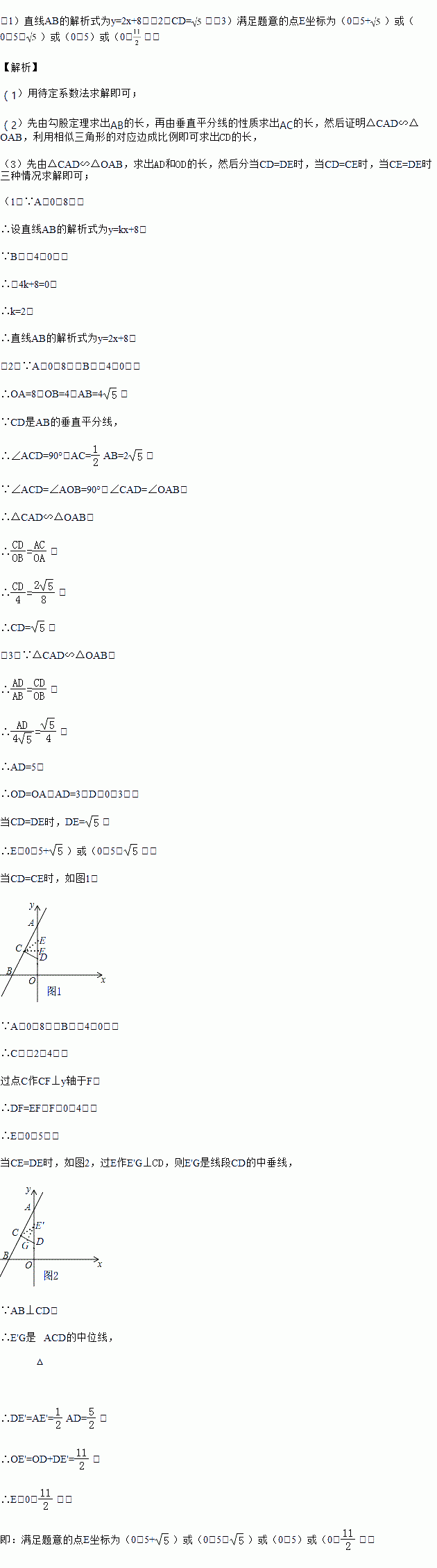 如图,在平面直角坐标系中,A(0,8),B(﹣4,0),线段AB的垂直平分线CD分别交AB、OA于点C、D,其中点D的坐标为(0,3).