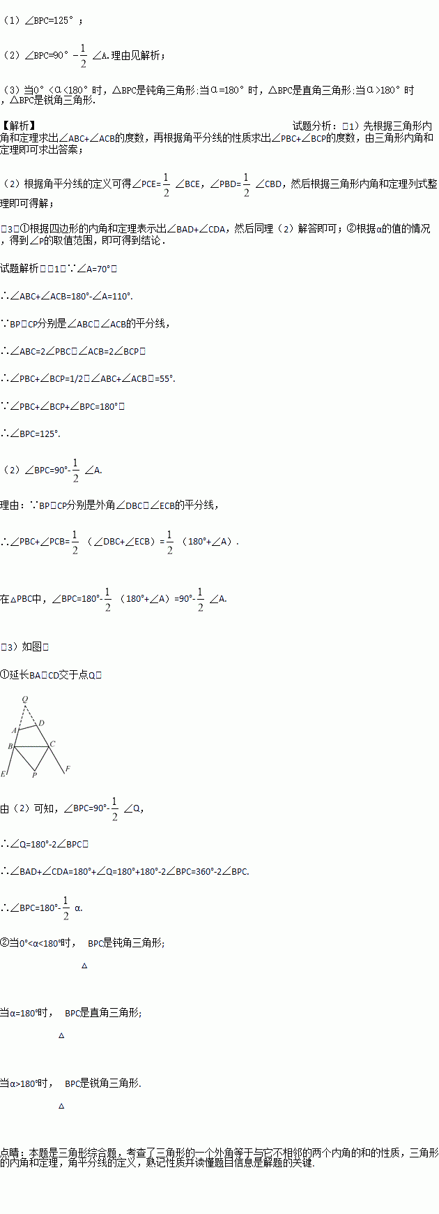 ②根据α值的情况,判断△BPC的形状.(按角分类)