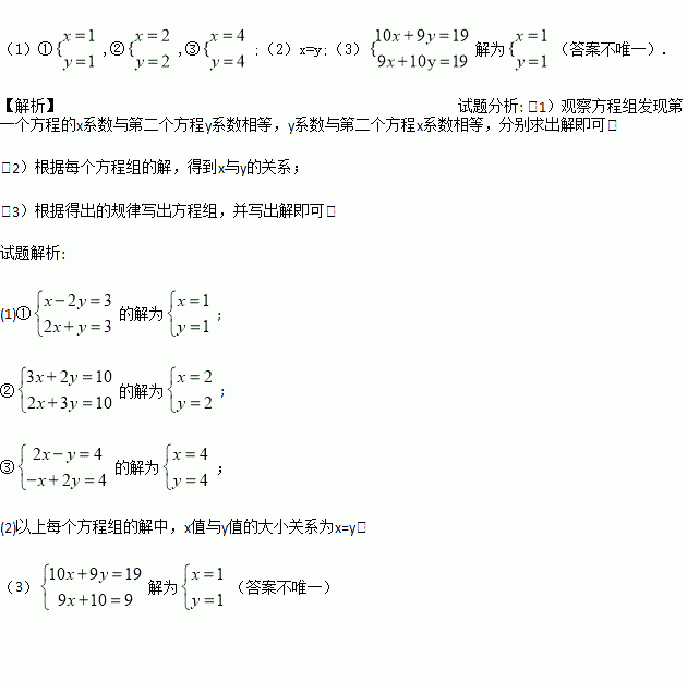 (2)以上每个方程组的解中,x值与y值的大小关系为 .
