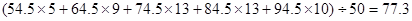(1)10;0.26;0.2;(2)72人;(3)77.3分
