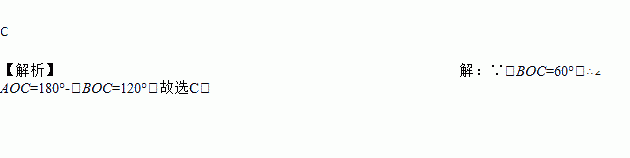 C 【解析】【解析】 ∵∠BOC=60°,∴∠AOC=180°-∠BOC=120°.故选C.