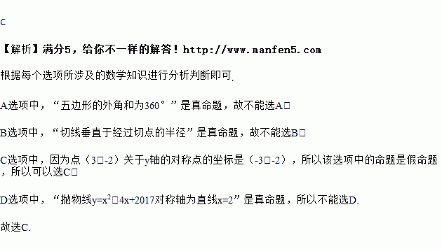 D. 抛物线y=x2﹣4x+2017对称轴为直线x=2