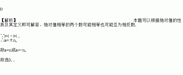 A. 都是零 B. 互为相反数 C. 相等 D. 相等或互为相反数