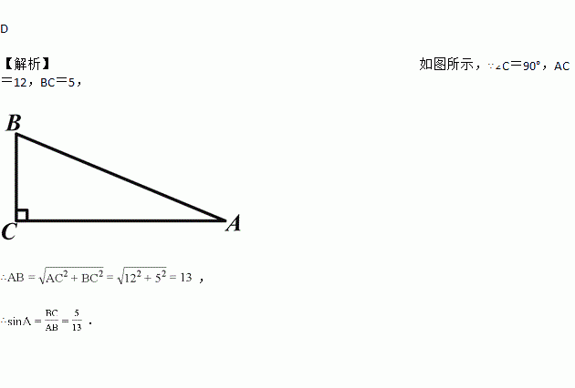 在Rt△ABC中,∠C=90°,AC=12,BC=5,则sinA的值为( )