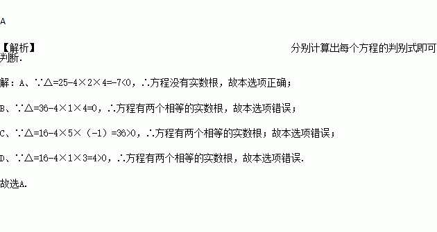 下列一元二次方程中,没有实数根的是( )