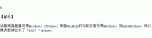 如图,长为8cm的橡皮筋放置在x轴上,固定两端A和B,然后把中点C向上拉升3cm至D点,则橡皮筋被拉长了( )