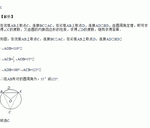如图,∠AOB=110°,弦AB所对的圆周角为( )