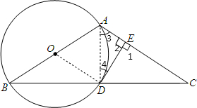 如图,以△ABC的边AB为直径的⊙O经过BC的中点D,过D作DE⊥AC于E.