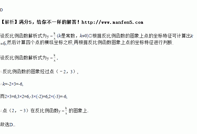 反比例函数的图象经过(﹣2,3),则下列各点在反比例函数图象上的是( )