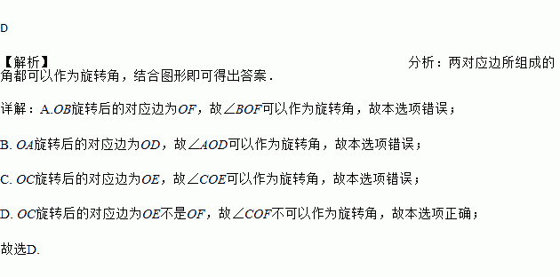 如图,把菱形ABOC绕点O顺时针旋转得到菱形DFOE,则下列角中不是旋转角的为( )