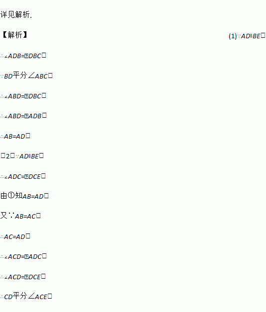 如图,已知点A、C分别在∠GBE的边BG、BE上,且AB=AC,AD∥BE,∠GBE的平分线与AD交于点D,连接CD.