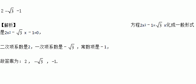 方程2x2﹣1=x的二次项系数是_____,一次项系数是_____,常数项是_____.