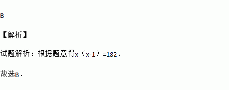 A. x(x+1)=182 B. x(x﹣1)=182 C. x(x+1)=182×2 D. x(x﹣1)=182×2