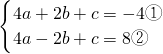 解答:∵抛物线y=ax2+bx+c经过点(2,-4)与(-2,8),