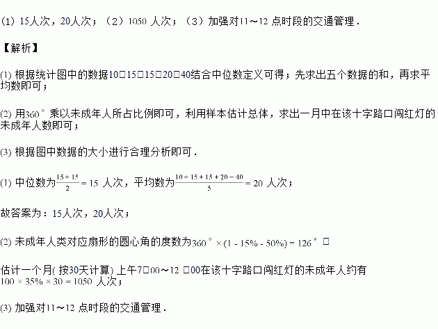 :00在该十字路口闯红灯的未成年人约有多少人次.![]()