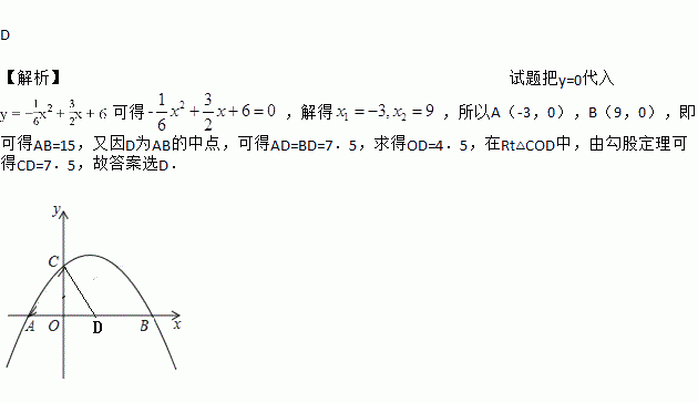 x+6与x轴交于点A,点B,与y轴交于点C.若D为AB的中点,则CD的长为( )