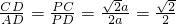 设PE=a,PC=b,则PD=2a,PA=2b,则CD2=2a×3a=b×3b,