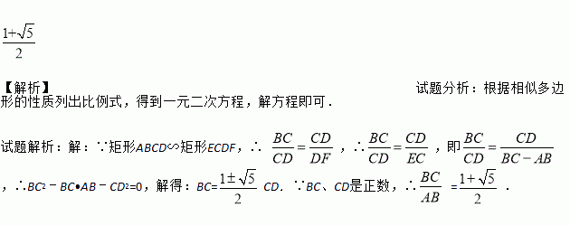 如图,矩形ABCD∽矩形ECDF,且AB=BE,求BC与AB的比值.