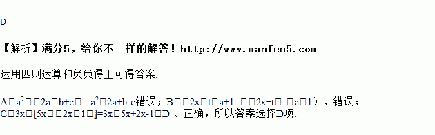 C. 3x﹣[5x﹣(2x﹣1)]=3x﹣5x﹣2x+1
