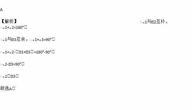 如果∠1与∠2互补,∠1与∠3互余,那么 ( )