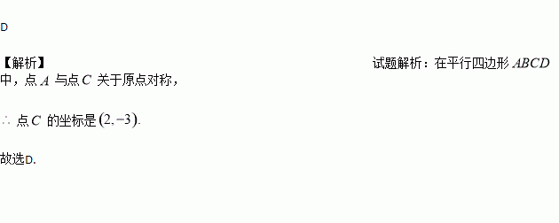 如图,已知?ABCD的两条对角线AC与BD交于平面直角坐标系的原点,点A的坐标为(-2,3),则点C的坐标为( )