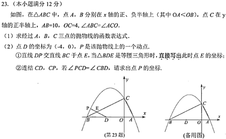 11.如图,在△ABC中,点A,B分别在x轴的正、负半轴上(其中OA<OB),点C在y轴的正半轴上,AB=10,OC=4,∠ABC=∠ACO.(1)求经过A,B,C三点的抛物线的函数表达式;