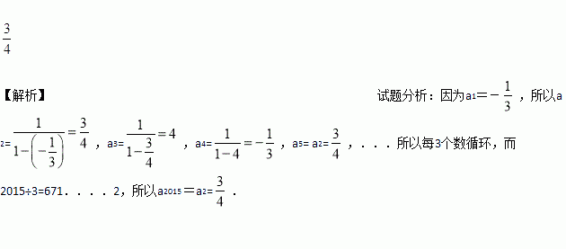 ,a2是a1的差倒数,a3是a2的差倒数,a4是a3的差倒数,…,依此类推,则a2015 =_____.