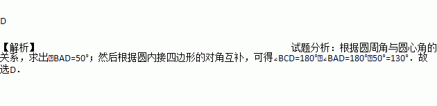 A. 50° B. 130° C. 100° D. 80°