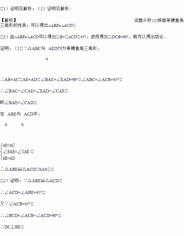 两个大小不同的等腰直角三角形三角板如图1所示放置,图2是由它抽象出的几何图形,B,C,E在同一条直线上,连结DC.