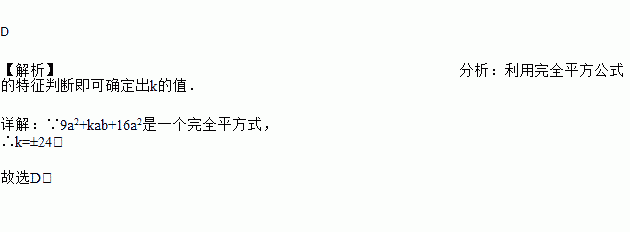 若9a2+kab+16a2是一个完全平方式,那么k的值是( )