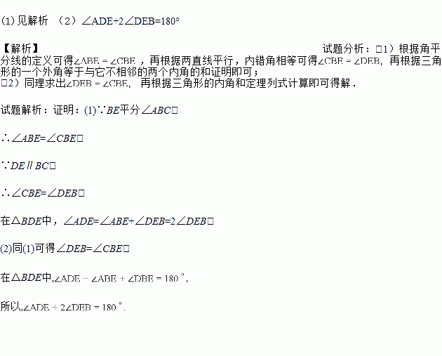 △ABC中,D是AB边上的一点,过点D作DE∥BC,∠ABC的角平分线于点E.