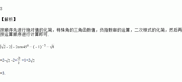 计算:|﹣2|﹣2cos45°+(﹣1)﹣2+ .