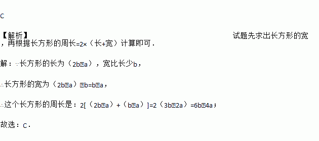 已知长方形的长为(2b-a),宽比长少b,则这个长方形的周长是 ( )