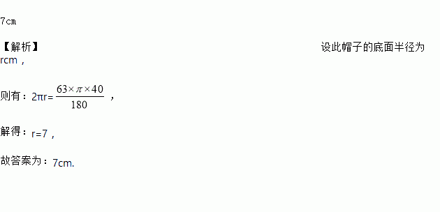 用圆心角为63°,半径为40cm的扇形纸片做成一顶圆锥形帽子,则此帽子的底面半径是_______.